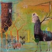 Der Künstler verwendete Acryl auf Leinwand, um dieses Kleine Gemälde zum Thema "Tiere" anzufertigen.