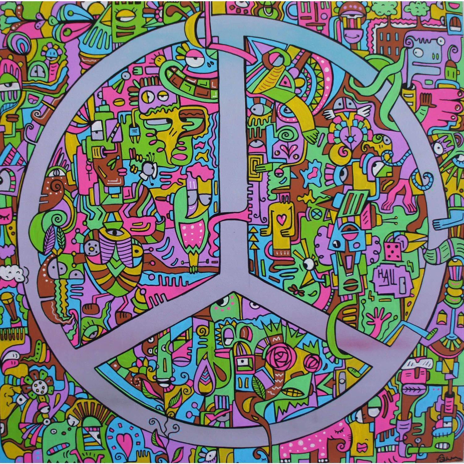 Dieses einzigartige und originelle zeitgenössische Kunstwerk "Peace is always beautiful" wurde von der zeitgenössischen Künstlerin Fanny geschaffen. Die Künstlerin verwendete POSCA-Marker und Acrylfarbe, um dieses kleinformatige Gemälde mit seinem einzigartigen Stil zu schaffen.