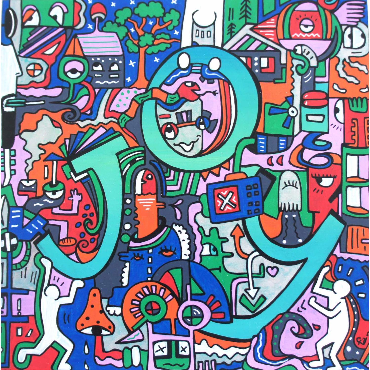 Dieses einzigartige und originelle zeitgenössische Kunstwerk "Joy" wurde von der zeitgenössischen Künstlerin Fanny geschaffen. Die Künstlerin verwendete POSCA-Marker und Acrylfarbe, um dieses kleinformatige Gemälde mit seinem einzigartigen Stil zu schaffen.