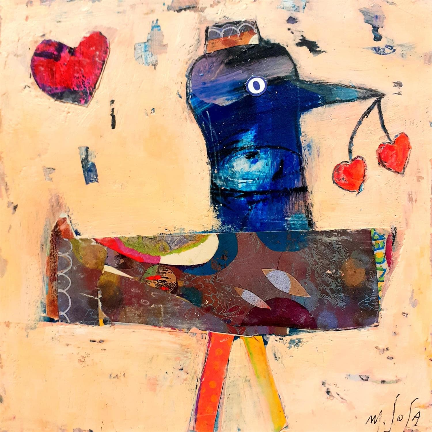 Dieses einzigartige und originale zeitgenössische Kunstwerk "L'oiseau à coeur" in dem Stil "Art brut" wurde von dem zeitgenössischen Künstler De Sousa Miguel kreiert.