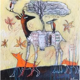 Der Künstler verwendete Pastell, Collage, Acryl auf Andere, um dieses Kleine Gemälde zum Thema "Tiere, Alltagsszenen" anzufertigen.
