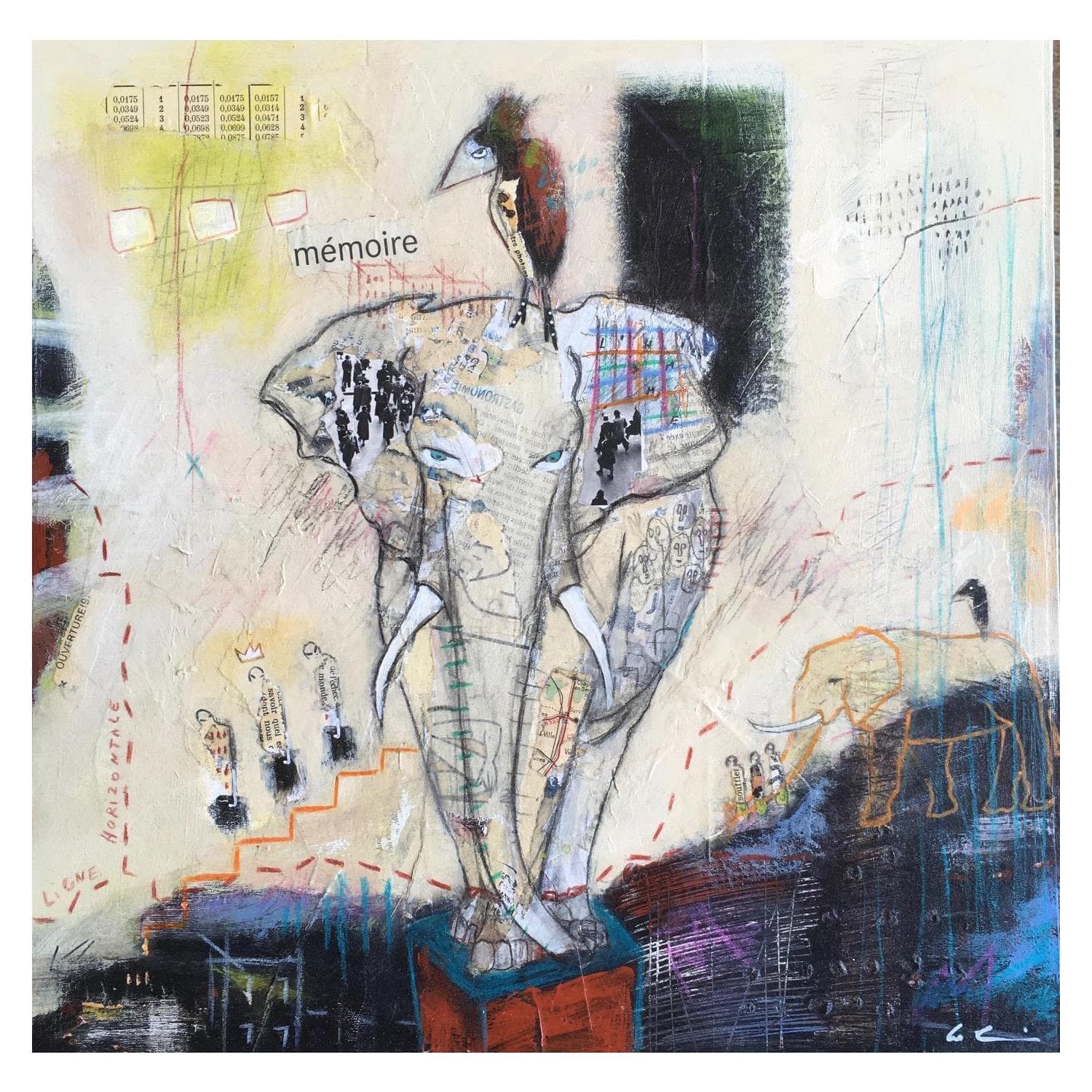 Der Künstler verwendete Pastell, Collage, Acryl auf Andere, um dieses Kleine Gemälde zum Thema "Tiere" anzufertigen.