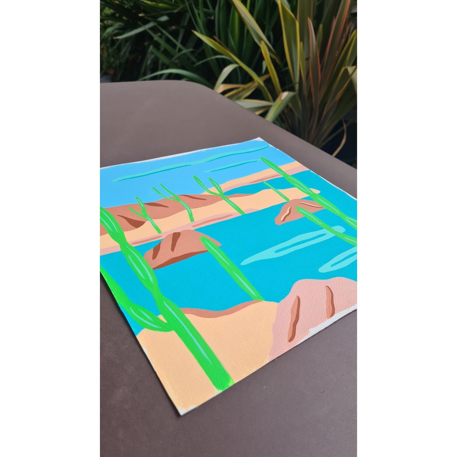 Die Künstlerin hat verschiedene Techniken verwendet, um dieses kleinformatige Gemälde mit seinem einzigartigen Stil zu schaffen.