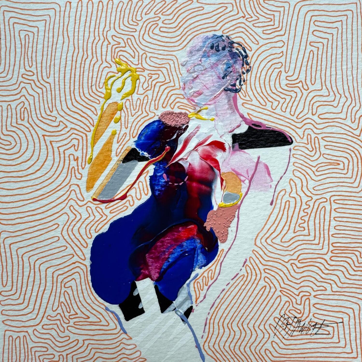 Der Künstler verwendete Acryl, Sand auf Papier, um dieses Kleine Gemälde zum Thema "Akt" anzufertigen.