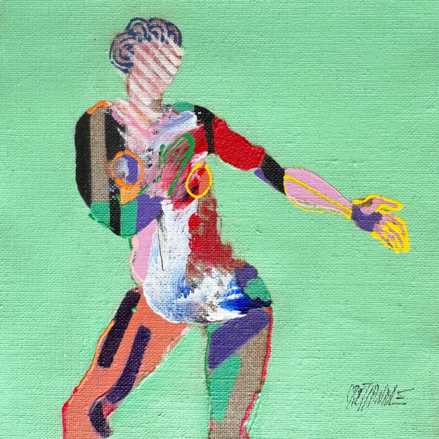 Der Künstler verwendete Acryl, Tinte, Sand auf Leinwand, um dieses Kleine Gemälde zum Thema "Akt" anzufertigen.