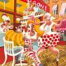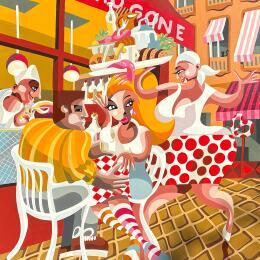 In einer farbenfrohen und energiegeladenen Bistroszene wollte ich die Geselligkeit und die Ausgelassenheit des Lebens in Lyon in den Vordergrund stellen. Die Idee ist, Sie in eine lebhafte Welt eintauchen zu lassen, in der Gaumenfreuden, Verführung und Spontaneität aufeinandertreffen.