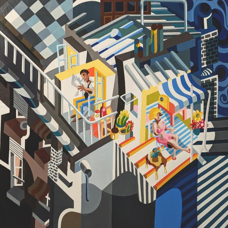 Über die formale Schönheit hinaus könnte das Werk als eine Reflexion über das zeitgenössische Stadtleben interpretiert werden. Die Balkone und die Innen-/Außenräume suggerieren ein Nebeneinander von Intimität und öffentlicher Zurschaustellung, von Einsamkeit und Koexistenz in einer dicht besiedelten Umgebung. Die Präsenz von Elementen wie Kakteen, Blumen und Alltagsgegenständen (eine Tasse, eine Zeitung) fügt inmitten der kantigen Formen eine Dimension von Weichheit und Menschlichkeit hinzu.