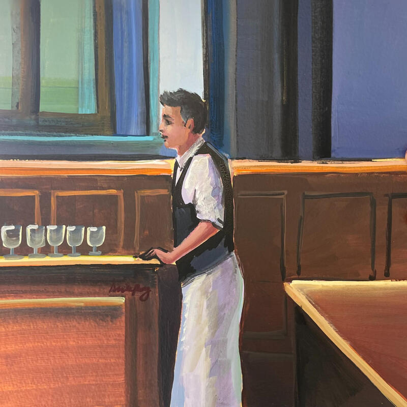 Dieses einzigartige und originelle zeitgenössische Kunstwerk „F3 5 Gläser und ein Kellner 107-21423-20260409-29“ wurde von der zeitgenössischen Künstlerin Alice Roy geschaffen.