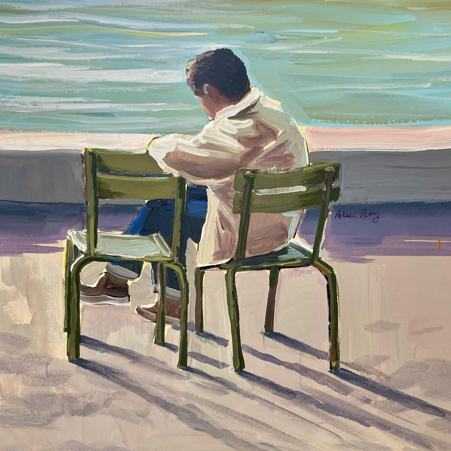 Alice Roy wurde in der Bretagne in eine Künstlerfamilie hineingeboren. Schon in jungen Jahren nutzte sie alle ihr zur Verfügung stehenden Materialien. Als Allrounderin mischt sie auf der Suche nach ihrer visuellen Identität verschiedene Medien und Kunststile. Die Künstlerin probiert zahlreiche Techniken aus: trockener Pastell, Gravur, Gouache, Ölmalerei... An alle Stile: Illustrationen für Kinder, Abstraktes... Um schließlich ihre eigene malerische Identität zu finden. Ihre geschilderten Lebensszenen, die von hübschen Silhouetten belebt oder nicht belebt werden, fangen uns mit ihrer erstaunlichen Ruhe ein. Der rote Faden, der sich durch seine Werke zieht: Ruhe und Gelassenheit.