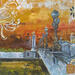 Der Künstler verwendete Acryl, Collage auf Leinenkarton, um dieses Kleine Gemälde zum Thema "Alltagsszenen" anzufertigen.
