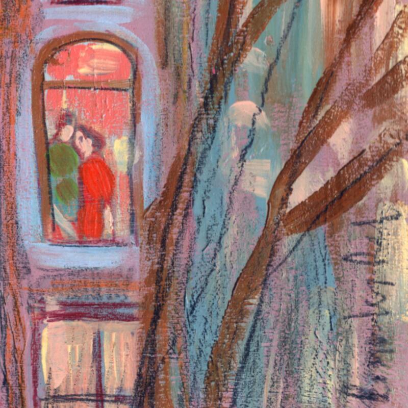 Mes voisinsGemälde Mes voisins von Lourdes Ral | Gemälde Figurativ Alltagsszenen Acryl