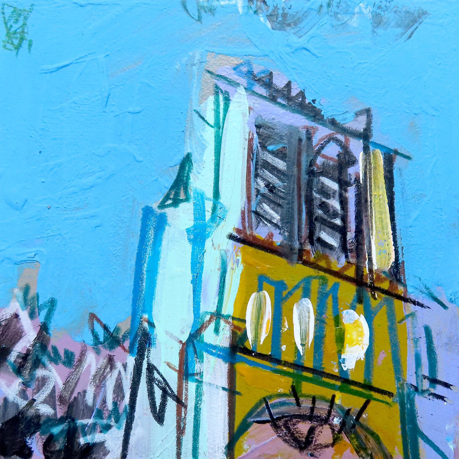 Dieses einzigartige zeitgenössische Kunstwerk stammt vom zeitgenössischen Künstler Anicet Olivier. Der Künstler hat Acryl- und Pastelltechniken verwendet, um dieses kleinformatige Gemälde auf Holzpappkarton im figurativen Stil zu schaffen, das sich mit den Themen Architektur, Stadtbild und Paris befasst.