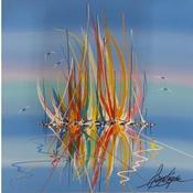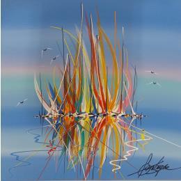 Der Künstler verwendete Acryl auf Leinwand, um dieses Kleine Gemälde anzufertigen.