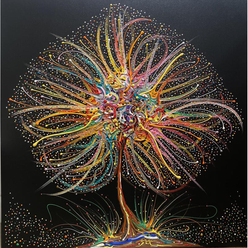 Der Künstler verwendete Acryl auf Leinwand, um dieses Große Gemälde anzufertigen.