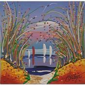 Der Künstler verwendete Acryl auf Leinenkarton, um dieses Kleine Gemälde zum Thema "Landschaften, Natur" anzufertigen.