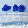 Gemälde Trois arbres bleus von Escolier Odile | Gemälde Figurativ Landschaften Pappe Acryl Sand
