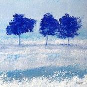 Trois arbres bleusGemälde Trois arbres bleus von Escolier Odile | Gemälde Figurativ Landschaften Pappe Acryl Sand