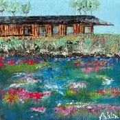 Dieses einzigartige und originale zeitgenössische Kunstwerk "La maison du lac " in dem Stil "Figurativ" wurde von dem zeitgenössischen Künstler Autelin Florence kreiert.