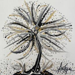 Der Künstler verwendete Acryl auf Leinwand, um dieses Kleine Gemälde anzufertigen.