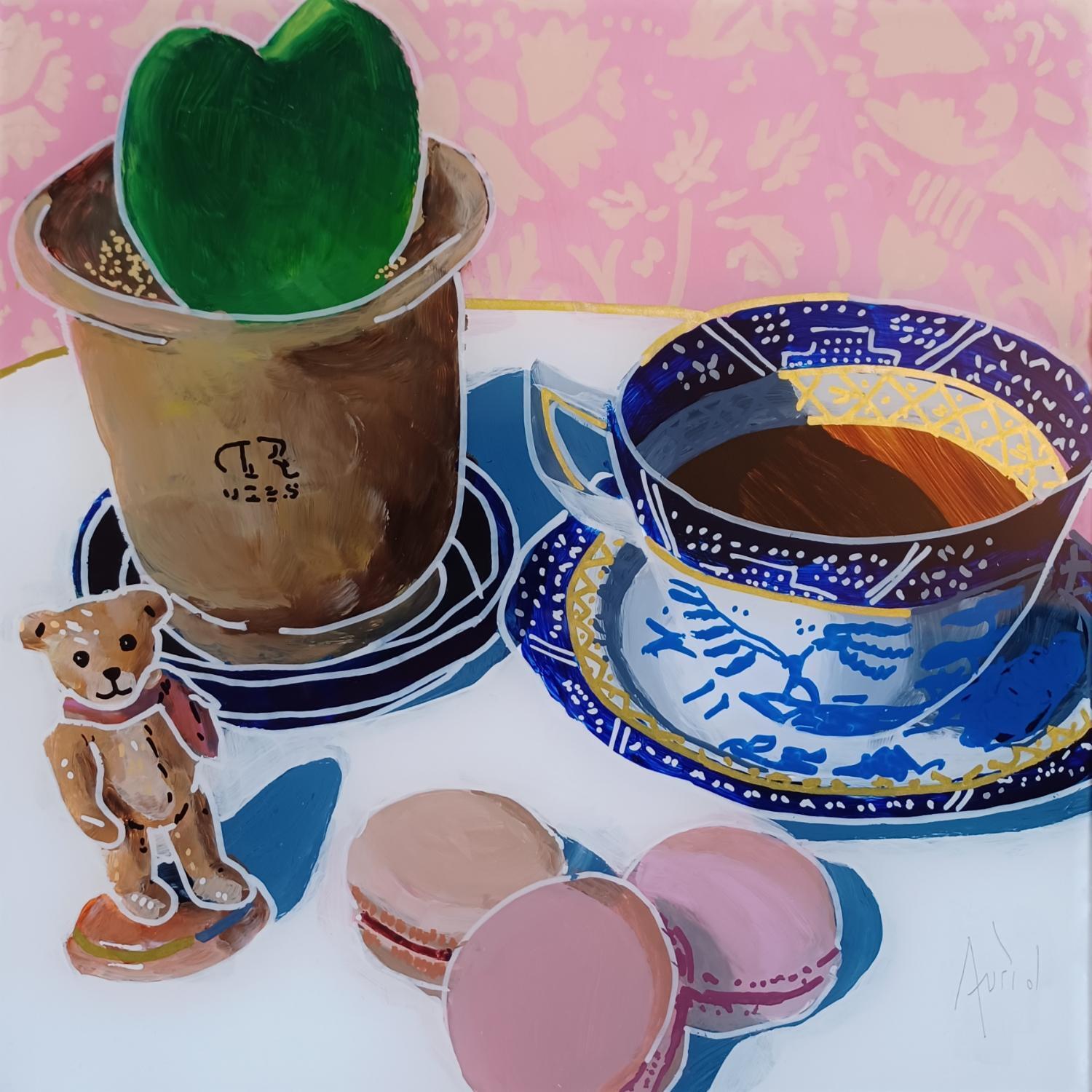Der Künstler verwendete Acryl, Plexiglas, Posca auf Plexiglas, um dieses Kleine Gemälde zum Thema "Stillleben" anzufertigen.
