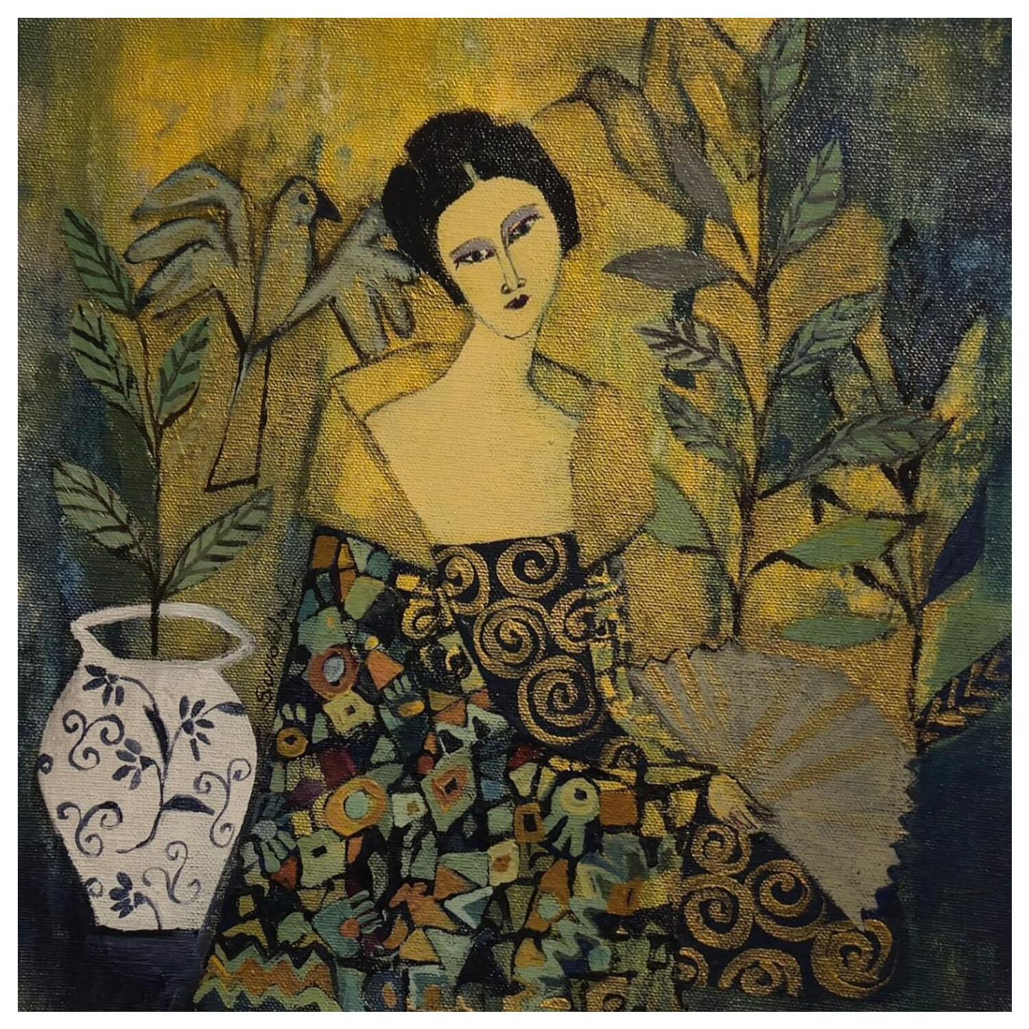 Geisha in greenGemälde Geisha in green von Sundblad Silvina | Gemälde Figurativ Acryl Pastell