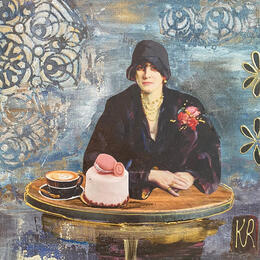 Der Künstler verwendete Acryl, Collage auf Leinenkarton, um dieses Kleine Gemälde zum Thema "Porträt, Alltagsszenen" anzufertigen.