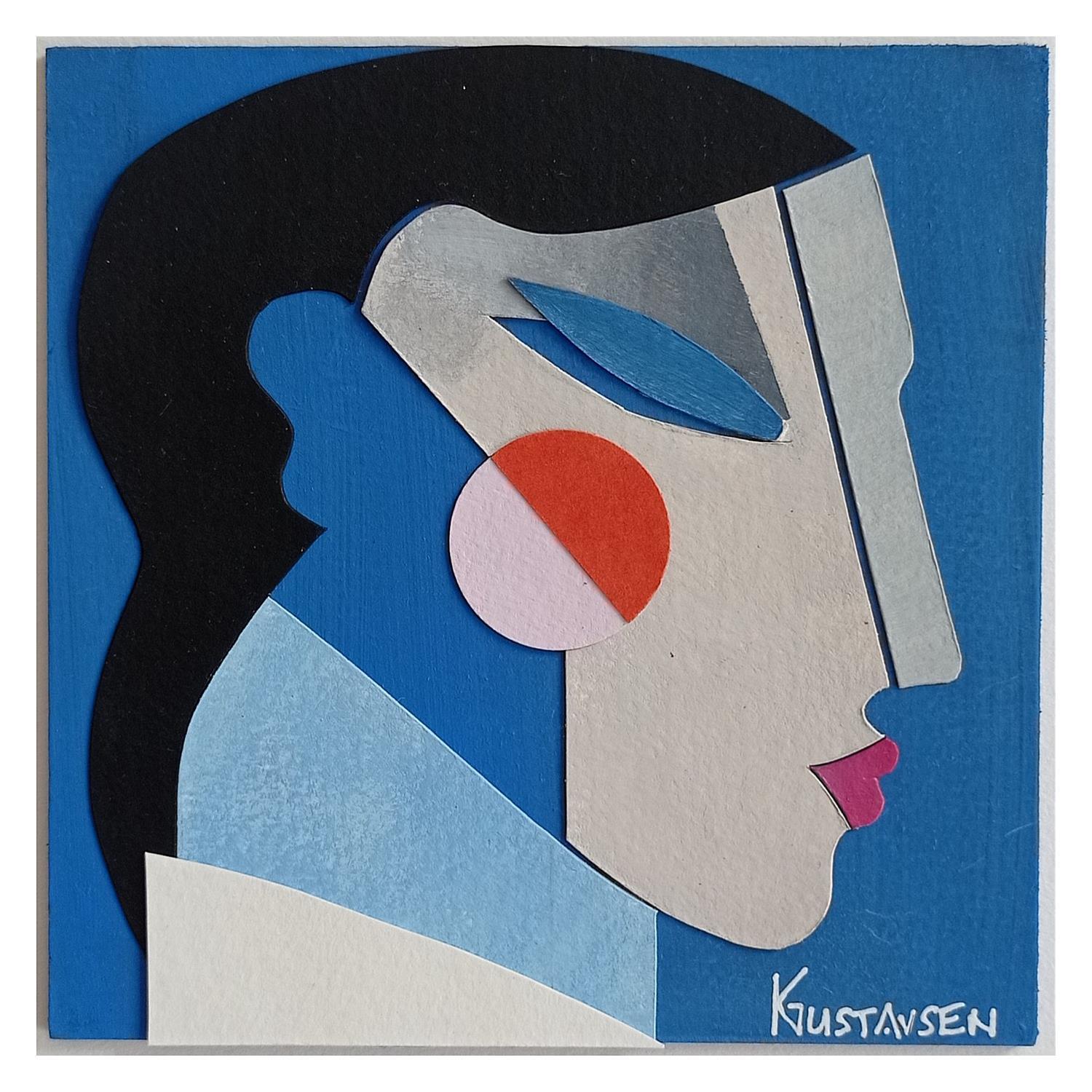 Der Künstler verwendete Acryl, Collage auf Holz, um dieses Kleine Gemälde zum Thema "Porträt" anzufertigen.