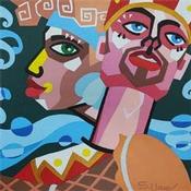 Der Künstler verwendete Acryl auf Leinwand, um dieses Kleine Gemälde zum Thema "Porträt" anzufertigen.