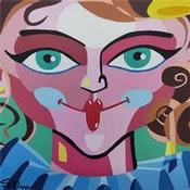 Der Künstler verwendete Acryl auf Leinwand, um dieses Kleine Gemälde zum Thema "Porträt" anzufertigen.