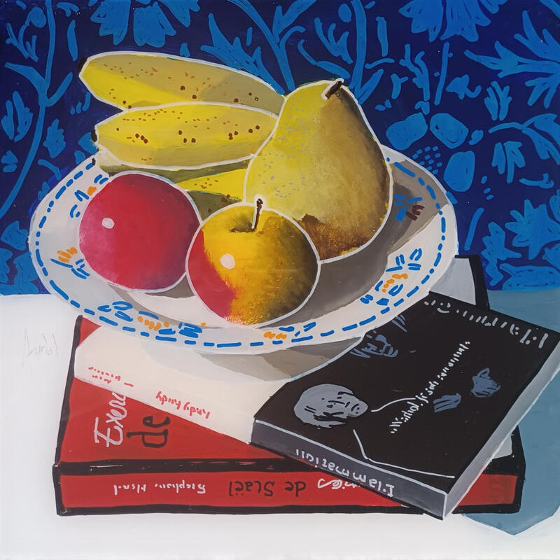 Der Künstler verwendete Acryl, Plexiglas, Posca auf Plexiglas, um dieses Kleine Gemälde zum Thema "Stillleben" anzufertigen.