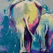 Der Künstler verwendete Acryl auf Leinwand, um dieses Kleine Gemälde zum Thema "Tiere" anzufertigen.
