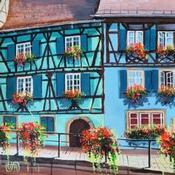 Der Künstler verwendete Acryl auf Leinwand, um dieses Kleine Gemälde zum Thema "Urban" anzufertigen.