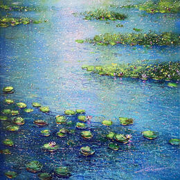 Dieses einzigartige und originale zeitgenössische Kunstwerk "L'étang en silence" in dem Stil "Figurativ" wurde von dem zeitgenössischen Künstler Dessapt Alan kreiert.