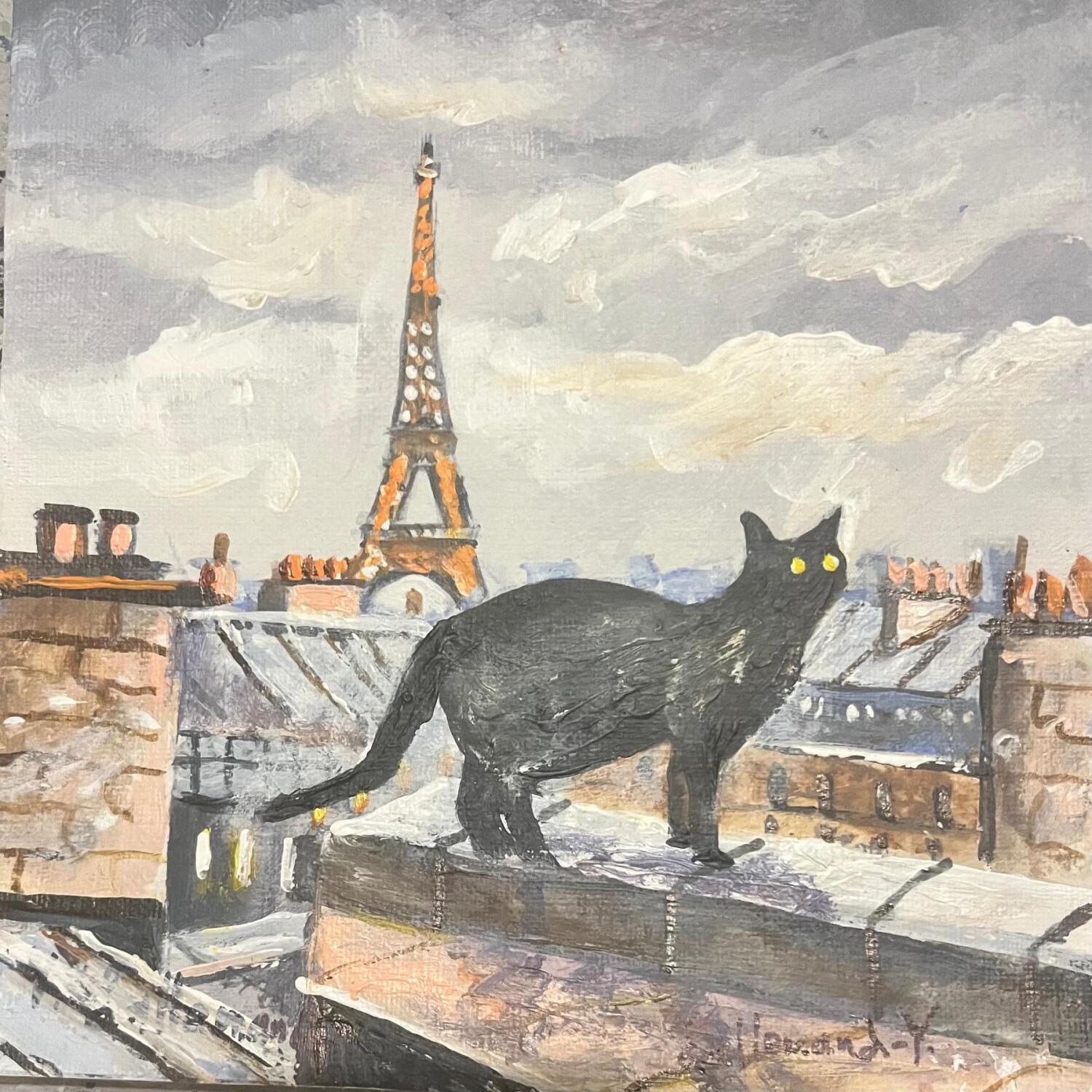 Dieses einzigartige und originale zeitgenössische Kunstwerk "Chat sur toits parisiens" in dem Stil "Figurativ" wurde von dem zeitgenössischen Künstler Lallemand Yves kreiert.