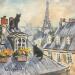 Dieses einzigartige und originale zeitgenössische Kunstwerk "Chats sur toits Paris" in dem Stil "Figurativ" wurde von dem zeitgenössischen Künstler Lallemand Yves kreiert.