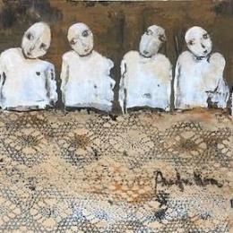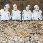 Die Künstlerin hat verschiedene Techniken verwendet, um dieses kleinformatige Gemälde mit seinem einzigartigen Stil zu schaffen.