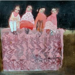 Se parer de tous les rosesGemälde Se parer de tous les roses von Guillon Anne | Gemälde Figurativ Alltagsszenen