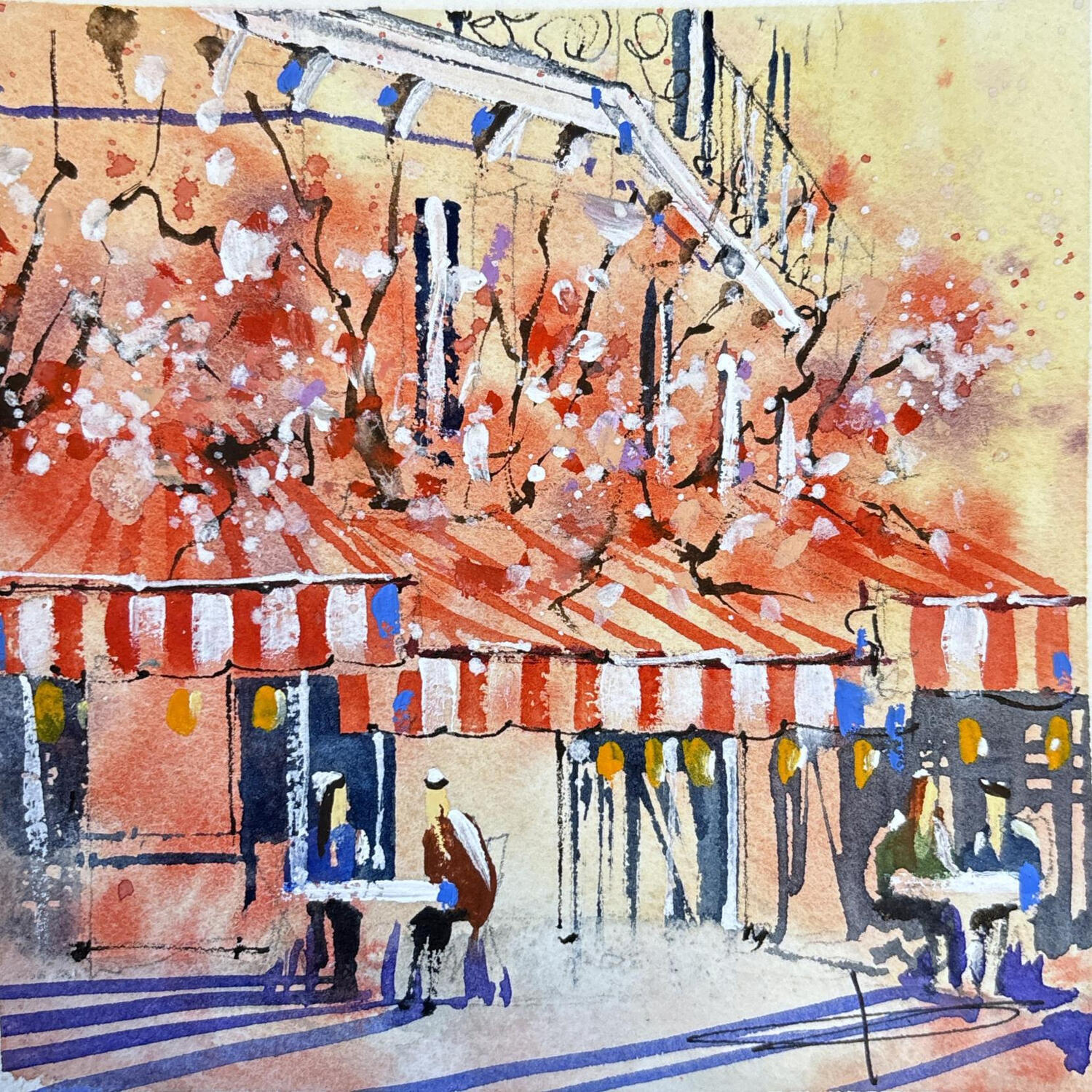 Dieses einzigartige und originale zeitgenössische Kunstwerk "Café fleuri de Paris" in dem Stil "Figurativ" wurde von dem zeitgenössischen Künstler Bailly Kévin kreiert.
