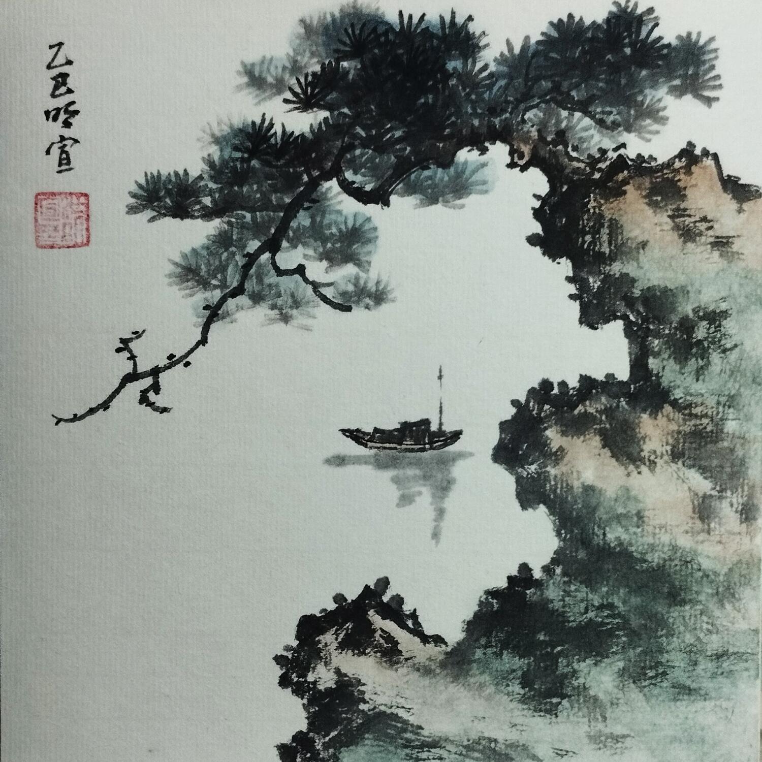 Dieses einzigartige und originelle zeitgenössische Kunstwerk "Pinetree on cliff" wurde von dem zeitgenössischen Künstler Du Mingxuan geschaffen.