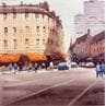 Der Künstler verwendete Aquarell auf Papier, um dieses Kleine Gemälde zum Thema "Landschaften, Urban, Alltagsszenen" anzufertigen.