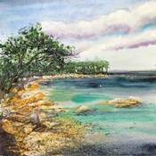 Die Künstlerin verwendete die Aquarelltechnik, um dieses kleinformatige Gemälde auf Papier im figurativen Stil mit dem Thema Marine zu schaffen.