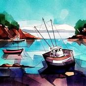 Marée basse 1 (3 mâts)Gemälde Marée basse 1 (3 mâts) von Langlois Jean-Luc | Gemälde Figurativ Marine Aquarell