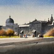 Der Künstler benutzte Aquarellmittel, um dieses figurative, kleinformatige Gemälde zu schaffen.