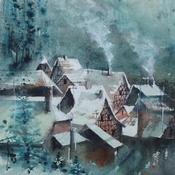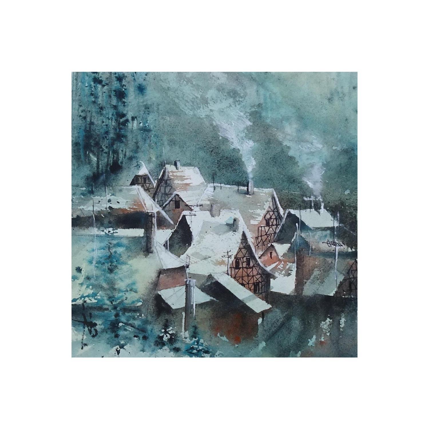Bien au chaud chez soiGemälde Bien au chaud chez soi von Abbatucci Violaine | Gemälde Figurativ Aquarell