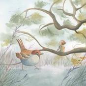 Dieses einzigartige und originelle zeitgenössische Kunstwerk "Das Kind und der riesige Spatz" wurde von der zeitgenössischen Künstlerin Marjoline Fleur geschaffen.