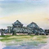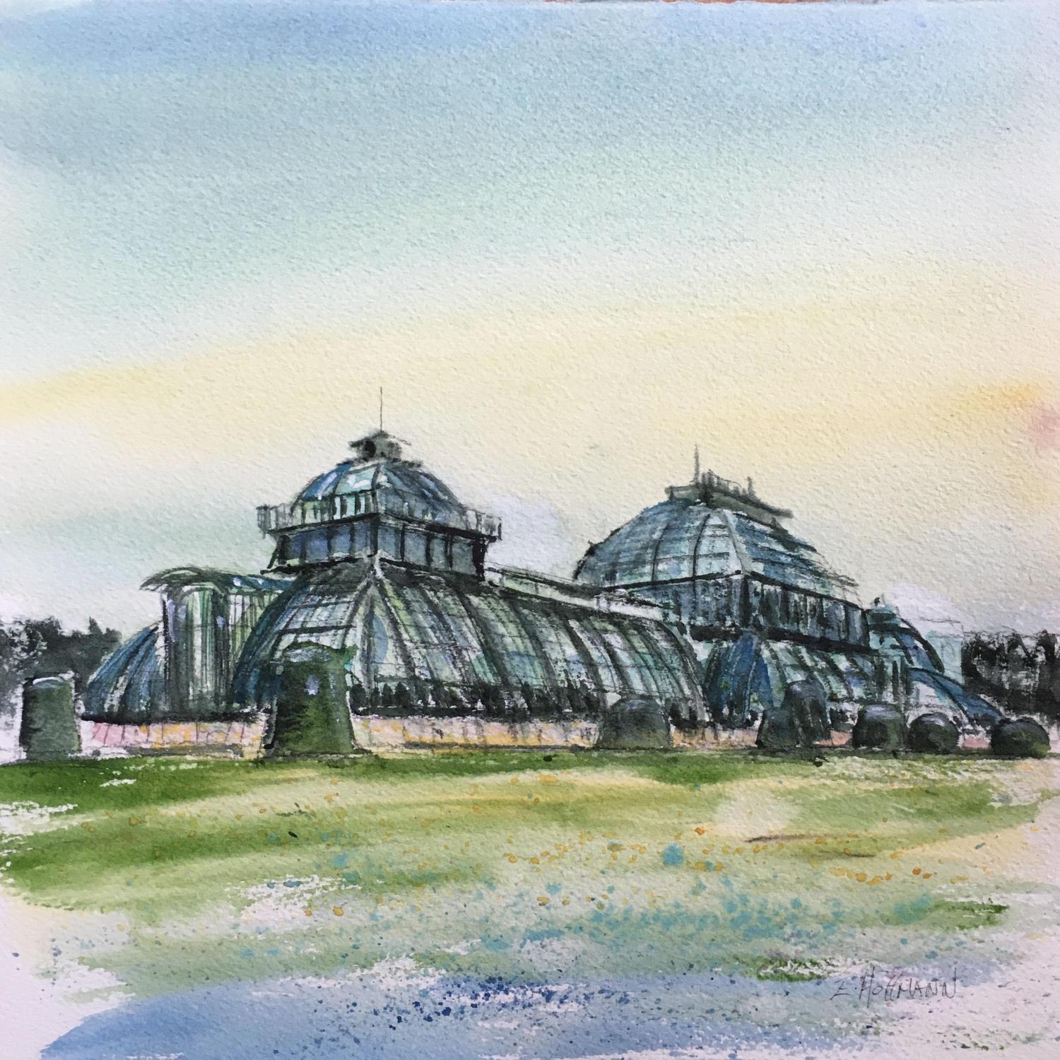Dieses einzigartige und originale zeitgenössische Kunstwerk "Palmenhaus" in dem Stil "Figurativ" wurde von dem zeitgenössischen Künstler Hoffmann Elisabeth kreiert.