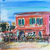 Die Künstlerin verwendete die Aquarelltechnik, um dieses kleinformatige Gemälde auf Papier im figurativen Stil mit dem Thema Urban zu schaffen.