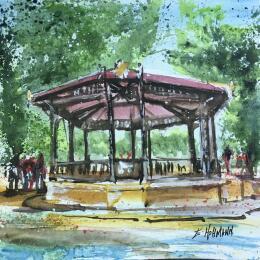 Dieses einzigartige und originale zeitgenössische Kunstwerk "Troyes Le kiosque du jardin" in dem Stil "Figurativ" wurde von dem zeitgenössischen Künstler Hoffmann Elisabeth kreiert.