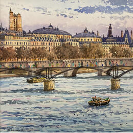 Dieses einzigartige und originale zeitgenössische Kunstwerk "La Seine et la Passerelle des Arts" in dem Stil "Figurativ" wurde von dem zeitgenössischen Künstler Decoudun Jean charles kreiert.