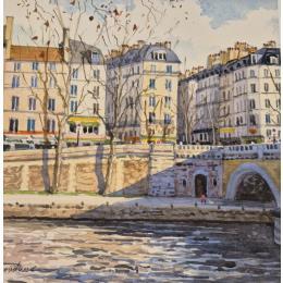 Le pont louis PhilippeGemälde Le pont louis Philippe von Decoudun Jean charles | Gemälde Figurativ Urban Aquarell